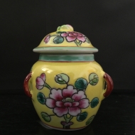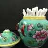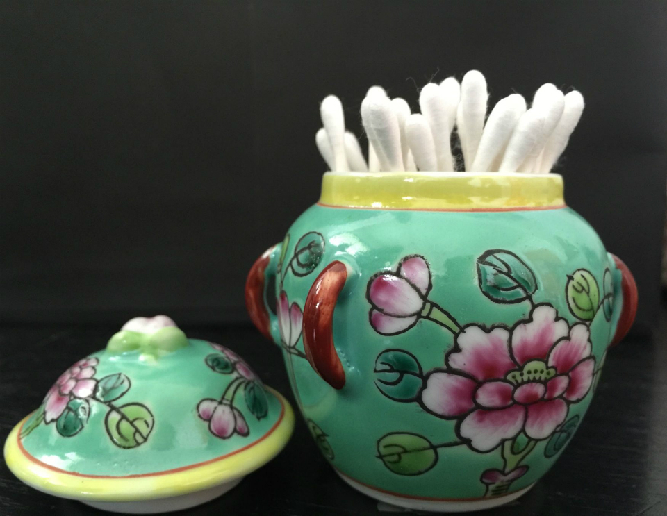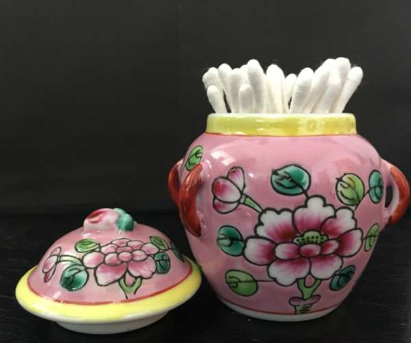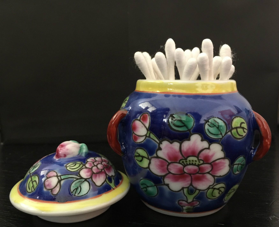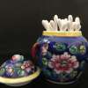 A beautiful hand painted mini kamcheng or ginger jar. Use this reproduction in any part of your home, even as a bathroom accessory.