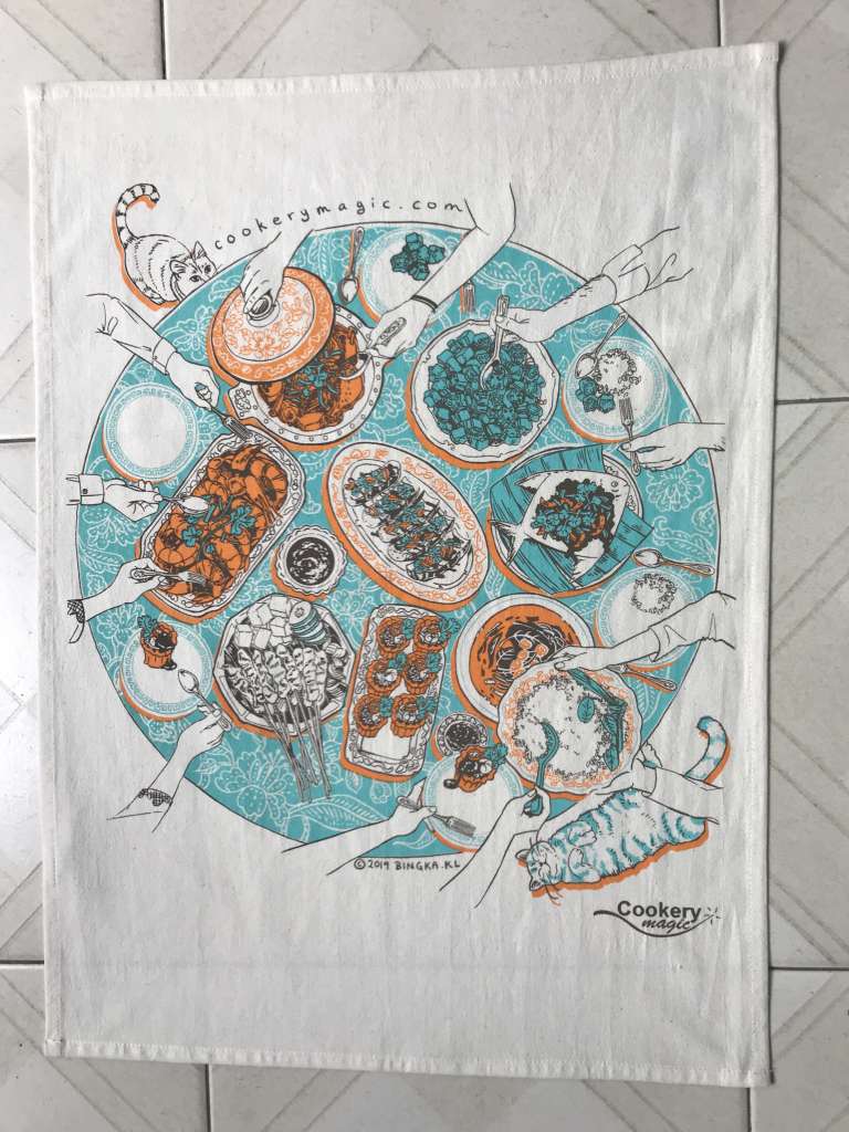 Beautiful limited edition tea towels for sale. Design commissioned by Cookery Magic, it shows a typical scene here after a cooking class or during a private dinner.